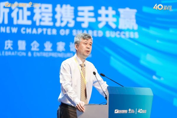 遠東控股集團創始人、董事局主席蔣錫培致歡迎詞。他對蒞臨慶典的各位領導、專家、學者、企業家朋友們表示熱烈歡迎,歡迎大家來到美麗的陶都宜興。他說到,遠東扎根于宜興,從無到有、從小到大、從弱到強、久經風雨、久經考驗,久久為功走到現在,發展成為一家涵蓋智能纜網、智能電池、智慧機場三大業務的行業標桿企業。他表示,現在年輕人和創始一代的人都有遠大的抱負和夢想,要讓遠東這樣的企業能夠代代相傳,繼往開來,百年還要輝煌,任重道遠。他說到,遠東40年的輝煌已成為過去,新的征程已經開啟。站在新的起點上,遠東將不負眾望,看清形勢、認清趨勢、把握局勢,練好內功、砥礪前行,把大家的厚愛和期待化作堅持不懈的動力。以“成為全球數一不二的企業” 為目標,不斷超越自我,創造更加美好的未來!